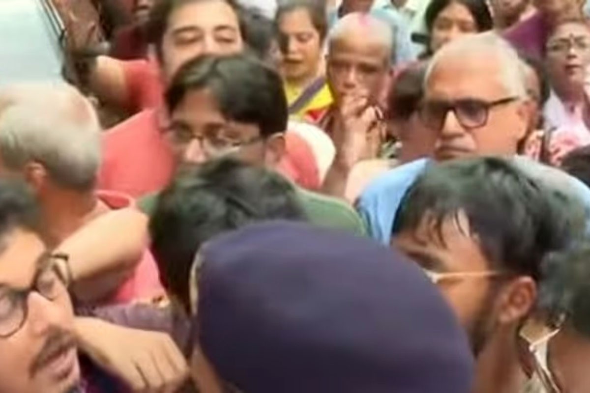 পঞ্চমীর পর মহাষষ্ঠীর দিন আবারও জুনিয়র চিকিৎসকদের বিক্ষোভ কর্মসূচি। আগেই ষষ্ঠীর দিন জুনিয়র চিকিৎসকদের পক্ষ থেকে ডাক দেওয়া হয় ‘অভয়া পরিক্রমা’ কর্মসূচির। সেই মতো এদিন দুপুরে ধর্মতলায় জুনিয়র চিকিৎসকদের অনশন মঞ্চে আনা হয় মিনিডোর। তাঁদের পরিকল্পনা ছিল, মহাষষ্ঠীর দিন মিনিডোর করে কলকাতার বিভিন্ন পুজো মণ্ডপে ঘুরবেন তাঁরা। কিন্তু ধর্মতলা থেকে একটু এগোনোর পরই চাঁদনি চকে পুলিশি বাধার সম্মুখীন হন জুনিয়র চিকিৎসকরা। পুলিশের পক্ষ থেকে আটকানো হয় মিনিডোরগুলি। জুনিয়র চিকিৎসকদের অভিযোগ, অবৈধভাবে আটক করা হয় মিনিডোরগুলি। যার জেরে উত্তেজনা ছড়ায় চাঁদনি চকে।