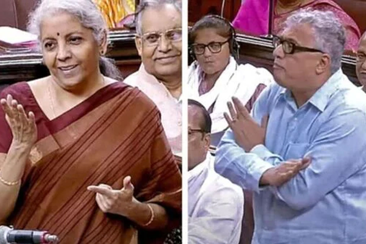 অর্থমন্ত্রীর এই বক্তব্যের মাঝপথে তৃণমূল সাংসদরা বিক্ষোভ দেখাতে শুরু করেন। সভা পরিচালনার দায়িত্বে ছিলেন ডেপুটি চেয়ারম্যান হরিবংশ নারায়ণ সিংহ। ডেরেক কিছু বলতে চাইলে তিনি নির্মলাকে থামিয়ে তাঁকে বলার সুযোগ করে দেন। এতে ক্ষুব্ধ হন নির্মলা। তখন কেন্দ্রীয় অর্থমন্ত্রীর কথার মাঝেই ডেরেক চিৎকার করে বলে ওঠেন, ‘আমি তিন মিনিট ধরে বলার চেষ্টা করছি। নিয়ম অনুযায়ী, যে কোনো বিষয়ে রাজ্যসভার কোনও সদস্য যদি অপর সদস্যকে প্রশ্ন করতে চান, তাঁকে চেয়ারম্যানের মাধ্যমে প্রশ্নটি করতে হয়। এটা নিয়ম। আগে থেকে নোটিস না দিয়ে সভায় কোনও রাজ্য সরকার সম্বন্ধে অসম্মানজনক কিছু বলা যায় না। অর্থমন্ত্রীর কাছে আমার প্রশ্ন, বাংলার ১০০ দিনের কাজের সাড়ে সাত হাজার কোটি টাকা কোথায়?’