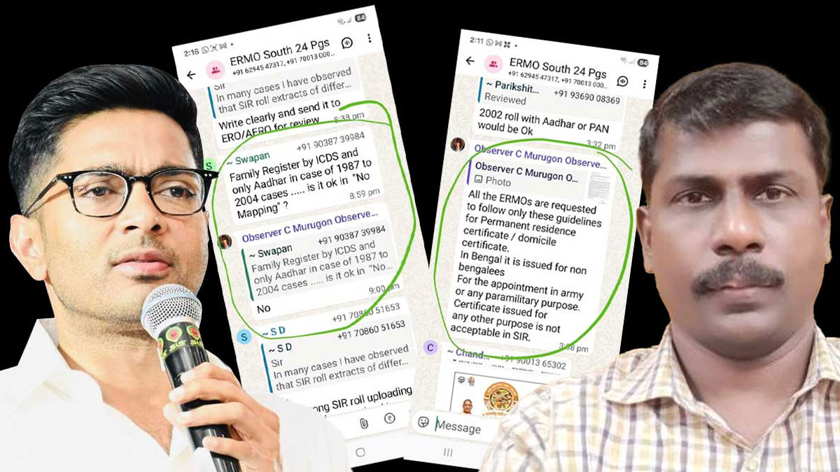 এই পরিস্থিতিতেই হোয়াটসঅ্যাপ চ্যাটের একটি স্ক্রিনশট প্রকাশ করে অভিষেক বন্দ্যোপাধ্যায় অভিযোগ করেন, বিশেষ পর্যবেক্ষক সরাসরি মাইক্রো পর্যবেক্ষকদের নির্দেশ দিচ্ছেন। তাঁর প্রশ্ন, ‘কার নির্দেশে এই কাজ হচ্ছে এবং কেন আইনসম্মত প্রক্রিয়া অনুসরণ করা হচ্ছে না?’ তিনি আরও দাবি করেন, এই ঘটনা সর্বোচ্চ আদালতের নির্দেশিকার পরিপন্থী। এছাড়া তাঁর অভিযোগ, রোল অবজার্ভারদের লগইন তথ্য ব্যবহার করে কলকাতার একটি নির্দিষ্ট স্থান থেকে নির্বাচনী পদ্ধতির তথ্যভান্ডারে প্রবেশ করা হয়েছে। তিনি আশঙ্কা প্রকাশ করে বলেন, একটি নির্দিষ্ট সম্প্রদায়কে লক্ষ্য করে এই পদক্ষেপ নেওয়া হচ্ছে। লগইন তথ্যের অপব্যবহার হয়েছে বলেও অভিযোগ করেন তিনি।