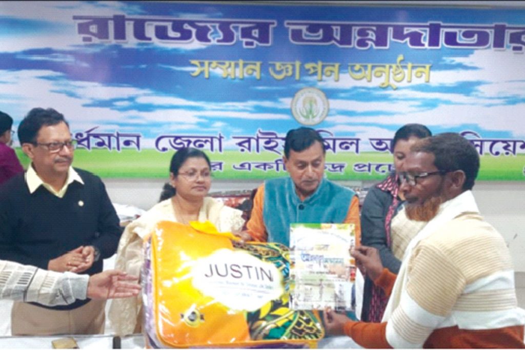 পশ্চিমবঙ্গের মধ্যে এক অনন্য দৃষ্টান্ত স্থাপন করলো বর্ধমান ডিস্ট্রিক্ট রাইস মিলস অ্যাসোসিয়েশন। রাজ্যের শস্যগোলা বলে পরিচিত বর্ধমানে পশ্চিমবঙ্গের অন্নদাতাদের সম্মান জ্ঞাপন করলেন বর্ধমান জেলা রাইস মিল অ্যাসোসিয়েশনের কর্মকর্তারা। যাঁর মস্তিষ্কপ্রসূত এই ভাবনা তিনি বাইরের কেউ নন। তিনি অ্যাসোসিয়েশনের সভাপতি আব্দুল মালেক। সেই ভাবনারই বাস্তবায়ন হলো আজ এক অনন্য সুন্দর অনুষ্ঠানের মাধ্যমে। জেলার কৃষক বন্ধুদের সম্মান জানালেন তাঁরা। উপস্থিত ছিলেন রাজ্যের মন্ত্রী স্বপন দেবনাথ, জেলা পরিষদের সভাধিপতি শ্যামা প্রসন্ন লোহার, সহকারী সভাধিপতি গার্গী নাহা, জেলা শাসক আয়েশা রাণী, বর্ধমান দক্ষিণের বিধায়ক খোকন দাস, বর্ধমান ডিস্ট্রিক্ট রাইস মিলস অ্যাসোসিয়েশনের সভাপতি আব্দুল মালেক।