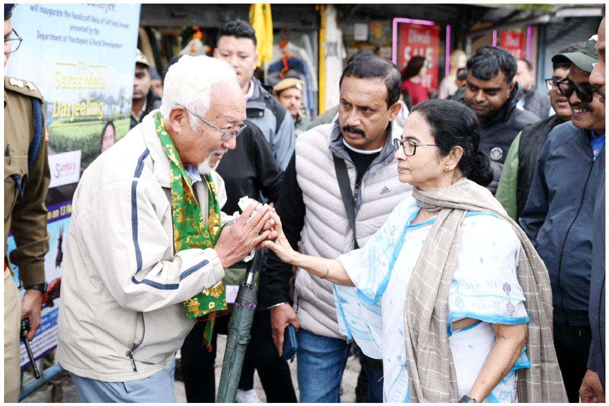 বুধবার দার্জিলিং সফরের একটি মুহূর্তে মমতা। নিজস্ব চিত্র