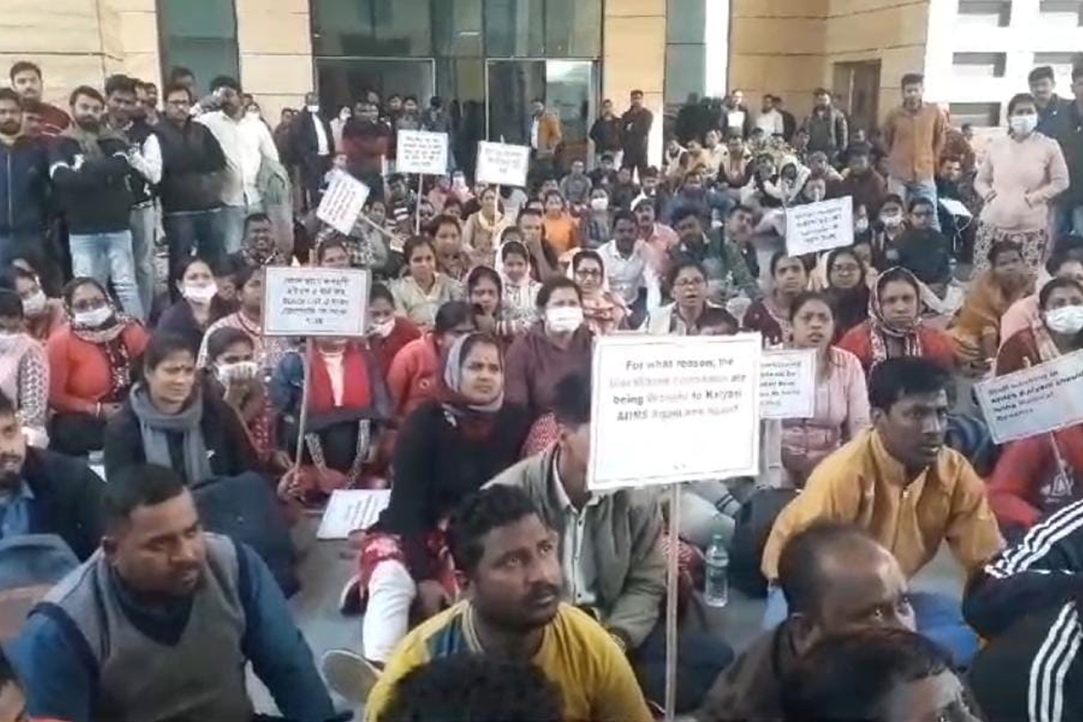 এদিন সকালে এইমসের সামনে প্ল্যাকার্ড হাতে বিক্ষোভে বসে পড়েন ৫৩৬ জন অস্থায়ী কর্মী। স্লোগানের মাধ্যমে আওয়াজ ওঠে বিভিন্ন দাবির। বিক্ষোভকারীদের কারণে ব্যাহত হয় চিকিৎসা পরিষেবা। দূর-দুরান্ত থেকে আসা রোগী থেকে রোগীর আত্মীয়রা দীর্ঘক্ষণ দাঁড়িয়ে থাকেন লাইনে। চরম হয়রানির শিকার হন তাঁরা।