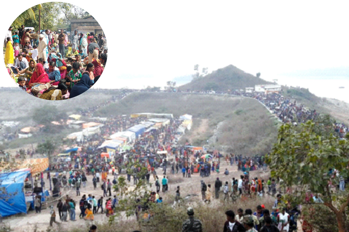 মুকুটমণিপুরে পরেশনাথ মেলা। (ইনসেটে) দক্ষিণ সাঁকরাইলের বড়পীর বাবার মেলা। নিজস্ব চিত্র