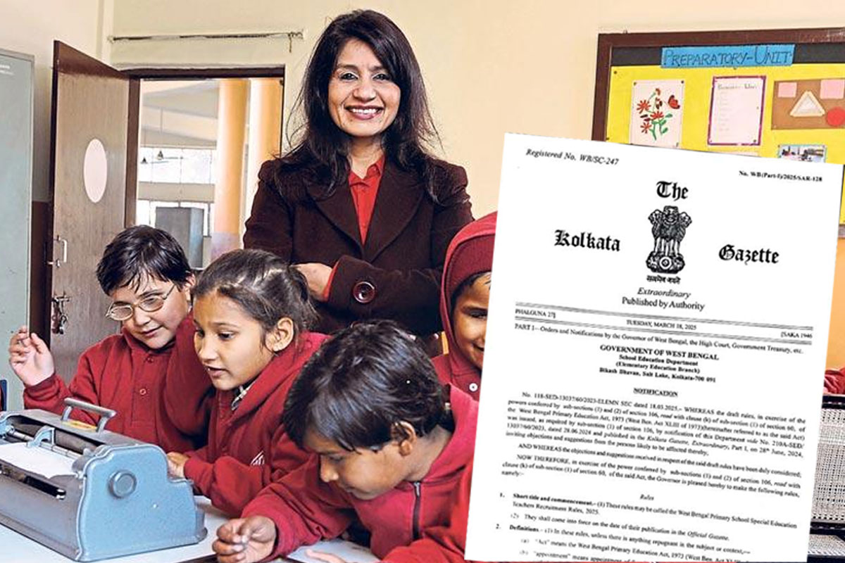 আগে উচ্চ প্রাথমিকের ক্ষেত্রে বিজ্ঞপ্তি প্রকাশ করা হয়েছিল। এবার প্রাথমিক স্তরেও স্পেশ্যাল এডুকেটর নিয়োগ করতে চলেছে রাজ্যের শিক্ষা দপ্তর। সেই উদ্দেশ্যে বিশেষ চাহিদা সম্পন্ন শিশুদের জন্য শিক্ষক নিয়োগের বিধির বিজ্ঞপ্তি প্রকাশ করল রাজ্য সরকার। ইতিমধ্যে রাজ্য মন্ত্রিসভার বৈঠকে এ বিষয়ে সিদ্ধান্ত হয়ে গিয়েছে। সেই ছাড়পত্র পাওয়ার পরেই এ সংক্রান্ত বিজ্ঞপ্তি প্রকাশ করল নবান্ন।