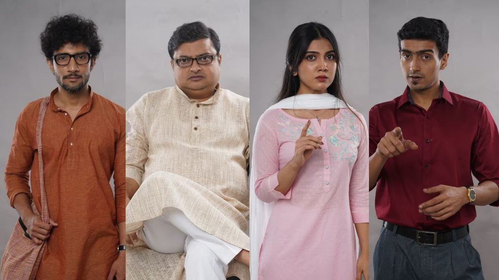 কলকাতা:- পরিচালক সুব্রত ঘোষের হাত ধরে বড় পর্দায় আসতে চলেছে ‘তাহাদের কথা’। এই ছবির গুরুত্বপূর্ণ চরিত্রে অভিনয় করতে দেখা যাবে বিশ্বনাথ বসুকে। এছাড়াও অনেক অভিনেতা অভিনেত্রীকে অভিনয় করতে দেখা যাবে। যারা সমাজে তেমন পরিচিত নয়, যাদের কথা কেউ শুনতে চান না, তাদের কাহিনি নিয়ে আসছে ‘তাহাদের কথা’। ছবিটি পরিচালনা করবেন সুব্রত ঘোষ। ইতিমধ্যে প্রকাশ্যে এসেছে ছবির লুক। ছবিতে সাদা কুর্তা পায়জামা পরে দেখা গিয়েছে বিশ্বনাথকে। চোখে কালো ফ্রেমের চশমা। গম্ভীর ব্যক্তিত্ব। চেয়ারে বসে তিনি। রাজনন্দীনি পরেছেন গোলাপী রঙের চুরিদার। ঠোঁটে লাল লিপস্টিক। খোলা চুল। তিনি যে কাউকে সাবধান করছেন। তেমনই ঋষভ বসুকে দেখা গিয়েছে একেবারে অন্যরকম সাজে। মাথায় ঝাঁকড়া চুল। চোখে কালো ফ্রেমের চশমা। পরনে খয়েরি রঙের সুতির কুর্তা ও কালো প্যান্ট। কাঁধে রয়েছে ঝোলা ব্যাগ। অনিন্দ্য সেনগুপ্তকে দেখা গিয়েছে মেরুন শার্ট কালো ফরমাল ট্রাউজার পরে। নতুন পরিচালকের হাত ধরে ফের বড়পর্দায় ঋষভ বসু, অনিন্দ্য সেনগুপ্ত ও রাজনন্দিনী পাল। ঋষভ এখানে একজন নকশাল আন্দোলনের কর্মী। তৃষাকে দেখা যাবে ডান্সার হিসেবে। তাদের প্রেমের গল্প নিয়ে আসছে ছবিটি। এই ছবি দিয়ে প্রথমবার বড়পর্দায় পা রাখবেন রাজনন্দিনী। তিনি জুটি বাঁধবেন অনিন্দ্যর সঙ্গে। অনিন্দ্য এখানে একজন কর্পোরেট কর্মী। তাঁর আর রাজনন্দিনীর প্রেম দেখা যাবে। এরা আগে একাধিক ওয়েব সিরিজে দর্শকদের নজর কেড়েছেন রাজনন্দিনী। এই প্রথম বড় পর্দায় পা দেবে সে। একেবারে নতুন ধরনের চরিত্রে দেখা যাবে তাঁকে। একরাশ নতুনত্ব নিয়ে আসছে ছবিটি। ছবির কেন্দ্রে আছে প্রেম। তেমনই আসছে এক ভিন্ন ধরনের কাহিনি। নতুন ধরনের গল্প নিয়ে আসতে চলেছে তাহাদের কথা।
