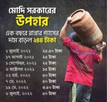 হিসাব বলছে ২০২১ সালের ১ জুলাই থেকে এখনও পর্যন্ত ২৪৪ টাকা দাম বেড়েছে রান্নার গ্যাসের। এই এক বছরে মোট ৮ বার দাম বাড়ানো হয়েছে।
