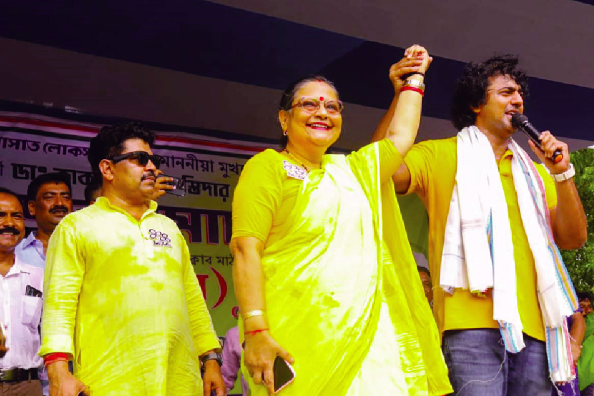 নিজস্ব প্রতিনিধি – নির্বাচনী প্রচারে বেড়িয়ে জনসাধারণের মন মাতালেন ঘাটালের তৃণমূল প্রার্থী তথা বাংলা চলচিত্রের তারকা অভিনেতা দীপক অধিকারী ওরফে দেব৷ নির্বাচনী প্রচারের শেষ লগ্নে বারাসাত কেন্দ্রের তৃণমূলের বিদায়ী সাংসদ তথা তৃণমূল প্রার্থী কাকলি ঘোষ দস্তিদারের সমর্থনে বৃহস্পতিবার গুমায় জোড়া জনসভা করেন দেব৷ প্রচারের মাধ্যমেই কয়েক হাজার গ্রামের মানুষদের মন জয় করলেন অভিনেতা৷ রুপোলি পর্দার নায়ককে কাছ থেকে দেখতে এদিন আগ্রহী হয়ে পড়েন দেবের অসংখ্য ‘ফ্যান গার্ল’৷ কাকলির সমর্থনে এদিন গুমা স্টেশন সংলগ্ন মাঠ এবং মাগুরুখালী গ্রামে নির্বাচনী সভায় আসেন তৃণমূলের স্টার ক্যাম্পেনার দেব৷ এদিন দুপুর দুটোয় স্টেশন সংলগ্ন মাঠের পাশেই অস্থায়ী হেলিপ্যাডে এসে নামেন দেব৷ রূপালী পর্দার এই নায়ককে দেখতে হেলিপ্যাডের সামনে তখন নামে জনসমুদ্র৷ এদিনের উভয় জনসভার ভিড়ের পাশাপাশি দেবের ‘লুক’ টিও ছিল নজরকাড়া৷ জিন্স এবং হলুদ টি-শার্ট পরে দেব মঞ্চে উঠে হাত নাড়াতেই বাঁধ ভাঙ্গা উচ্ছ্বাসে মেতে ওঠেন গ্রামের স্কুল, কলেজ পড়ুয়া তরুণী থেকে গৃহবধু সহ মাঝবয়সী মহিলারাও৷ কার্যত ভিড় সামাল দিতে হিমশিম অবস্থা হয় পুলিশের৷