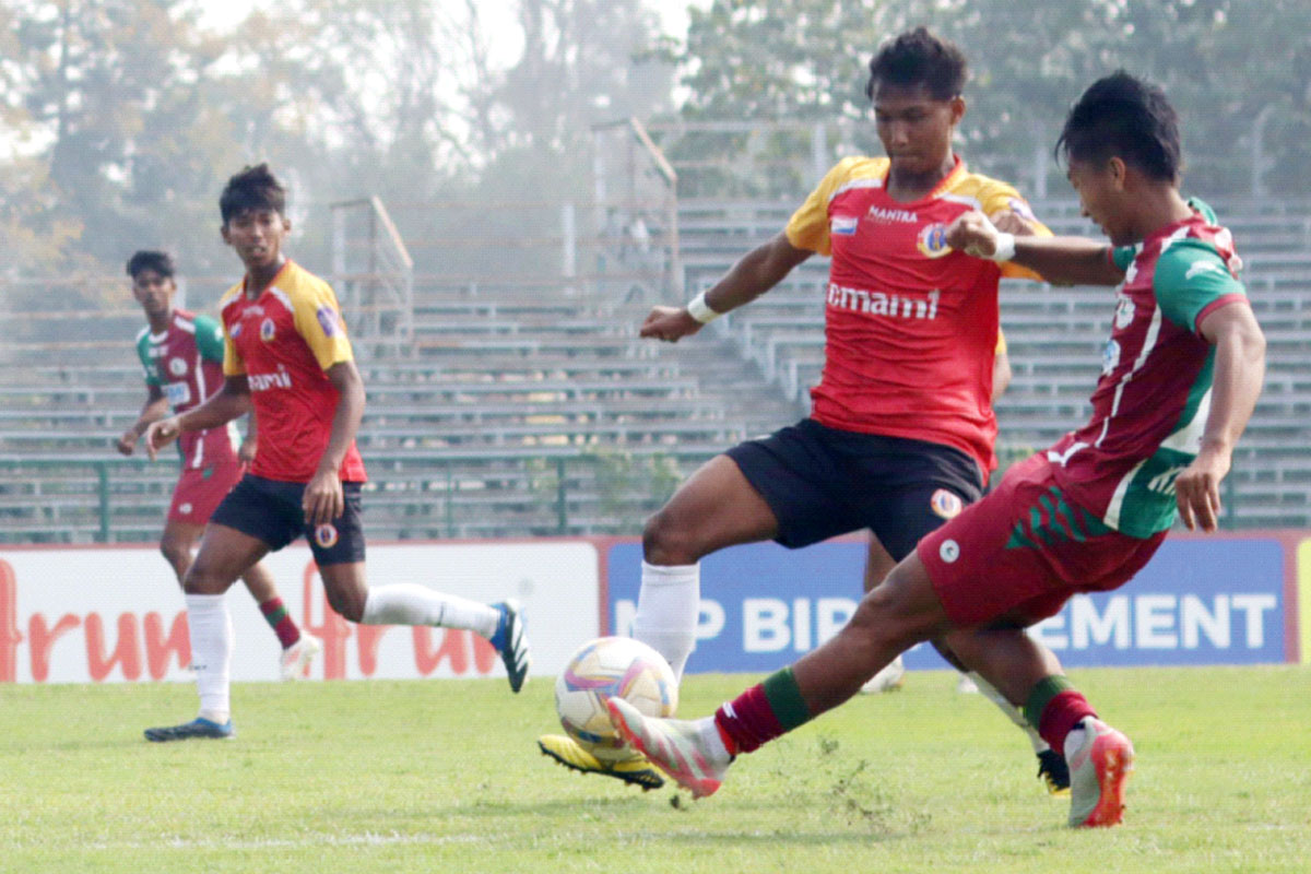 মোহনবাগান দলে এখনও পর্যন্ত সেইভাবে বিদেশি খেলোয়াড়রা যোগ না দেওয়ায় তরুণ ফুটবলারদের লড়াই করার জন্য নামিয়েছিলেন এদিনের দায়িত্বপ্রাপ্ত কোচ বাস্তব রায়৷ কলকাতায় এখনও এসে পৌঁছননি বিদেশি কোচ হোসে মোলিনা৷ তাই বাস্তব রায়ের প্রশিক্ষণে মাঠে নামে সবুজ-মেরুন শিবির৷ এমনকি দলের একমাত্র বিদেশি ফুটবলার টম অলড্রেডকে দলে রাখা হয়নি৷ কলকাতা লিগে খেলা রাজ বাসফোর, অভিষেক সূর্যবংশী, টাইসন সিং ও সুহেল ভাটদের নিয়ে দল গড়েছিলেন৷ রিজার্ভ বেঞ্চে মাত্র চারজন ফুটবলার ছিলেন৷ শুরু থেকেই নিজেদের দখলে বল রাখার চেষ্টায় দু’দলই ব্যস্ত ছিল৷ গতবারের ডুরান্ড কাপ ফুটবলের গ্রুপের তিনটি ম্যাচেই হার স্বীকার করেছিল ডাউনটাউন দল৷ তাদের বিরুদ্ধে প্রথমার্ধে গোলের মুখ খুলতেই পারেনি মোহনবাগান৷ এদিনের খেলায় খেলোয়াড়দের মধ্যে বোঝাপড়ায় যে সমস্যা ছিল, তা বুঝতে পারা গিয়েছে৷ বিশেষ করে আশিস রাই ও গ্লেন মার্টিন্সের উপরেই নির্ভর করতে হয়েছিল তরুণ ব্রিগেডকে৷ একবার ফ্রিকিক থেকে সুহেলের শট বারে লেগে ফেরত আসে৷ এমনকি মোহনবাগানের ডিফেন্ডাররাও প্রতিপক্ষ দলের খেলোয়াড়দের আক্রমণ প্রতিহত করার জন্য সজাগ থাকেন৷ খেলার প্রথমার্ধে কোনও পক্ষই গোল করতে পারেনি৷