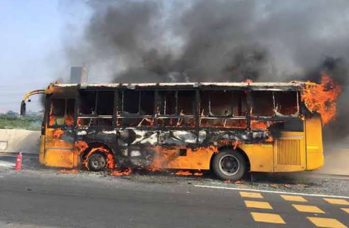বাইপাসের ধারে দাউদাউ করে জ্বলল সরকারি বাস