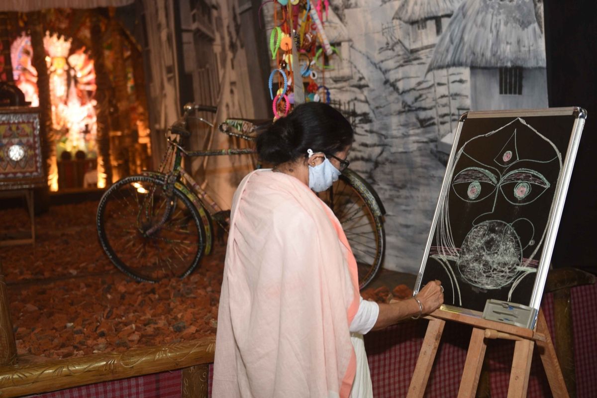 শাঁখ বাজিয়ে নবান্ন থেকে ১১০টি পুজোর উদ্বোধন, ২১ পল্লীতে ছবি আঁকলেন মমতা