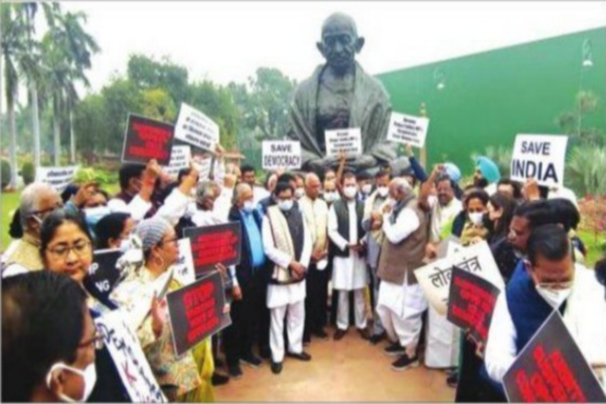 সংসদের বাইরে ধরনা মঞ্চে তৃণমূল সাংসদদের পাশে রাহুল গান্ধি