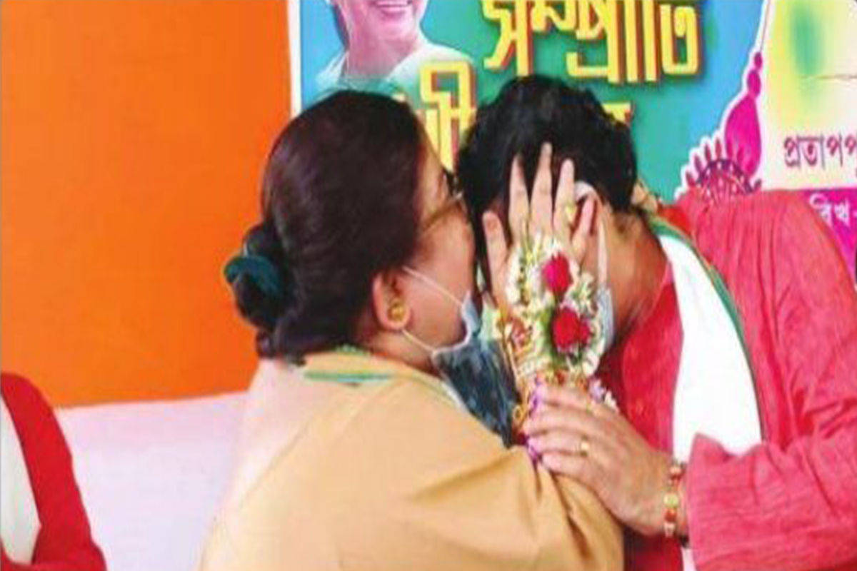 মঞ্চে মন্ত্রী স্বামীর কপালে চুমু কাউন্সিলর স্ত্রীর
