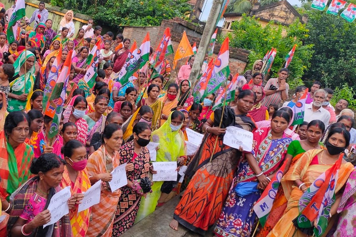 নতুন কৃষি আইনের বিরুদ্ধে ও হাথরাস ধর্ষণ কাণ্ডের প্রতিবাদে শালবনিতে তৃণমূল কংগ্রেসের ধিক্কার মিছিল