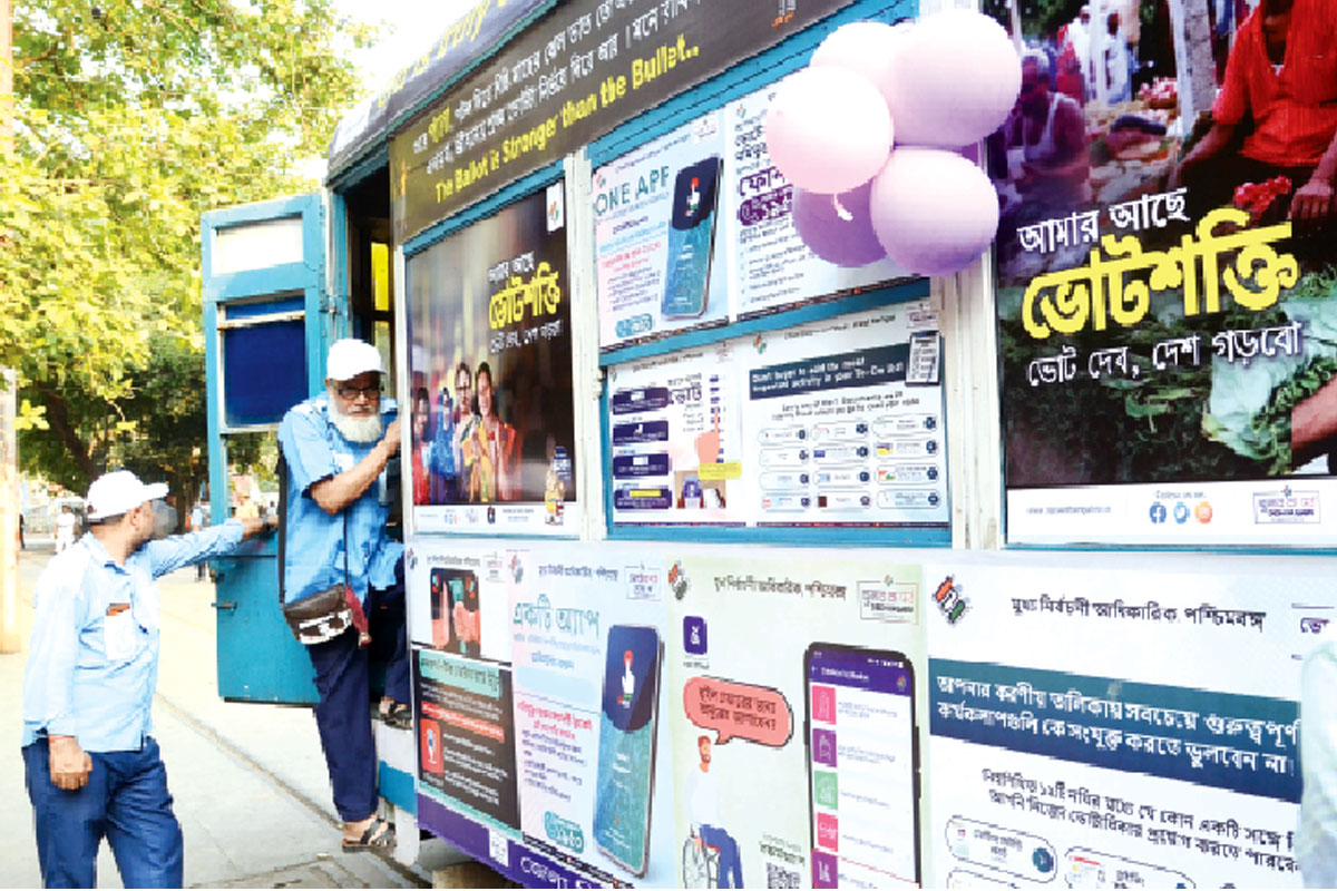 ভোটদানের সচেতনতা বাড়াতে বিশেষ ট্রামে চাপল নির্বাচন কমিশন