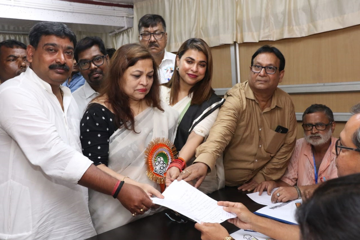 মেয়েকে সঙ্গে নিয়ে মনোনয়ন জমা মানিকতলা উপনির্বাচনের তৃণমূল প্রার্থী সাধন-জায়া সুপ্তির