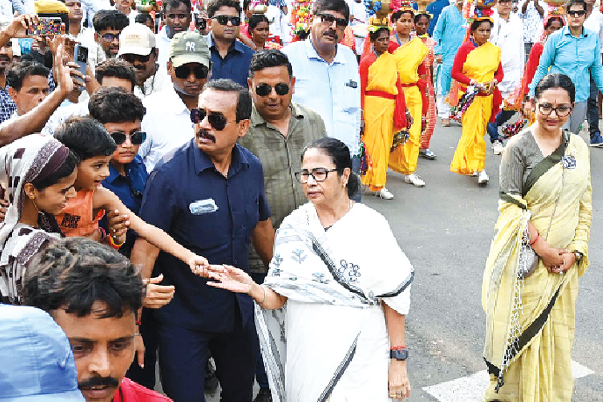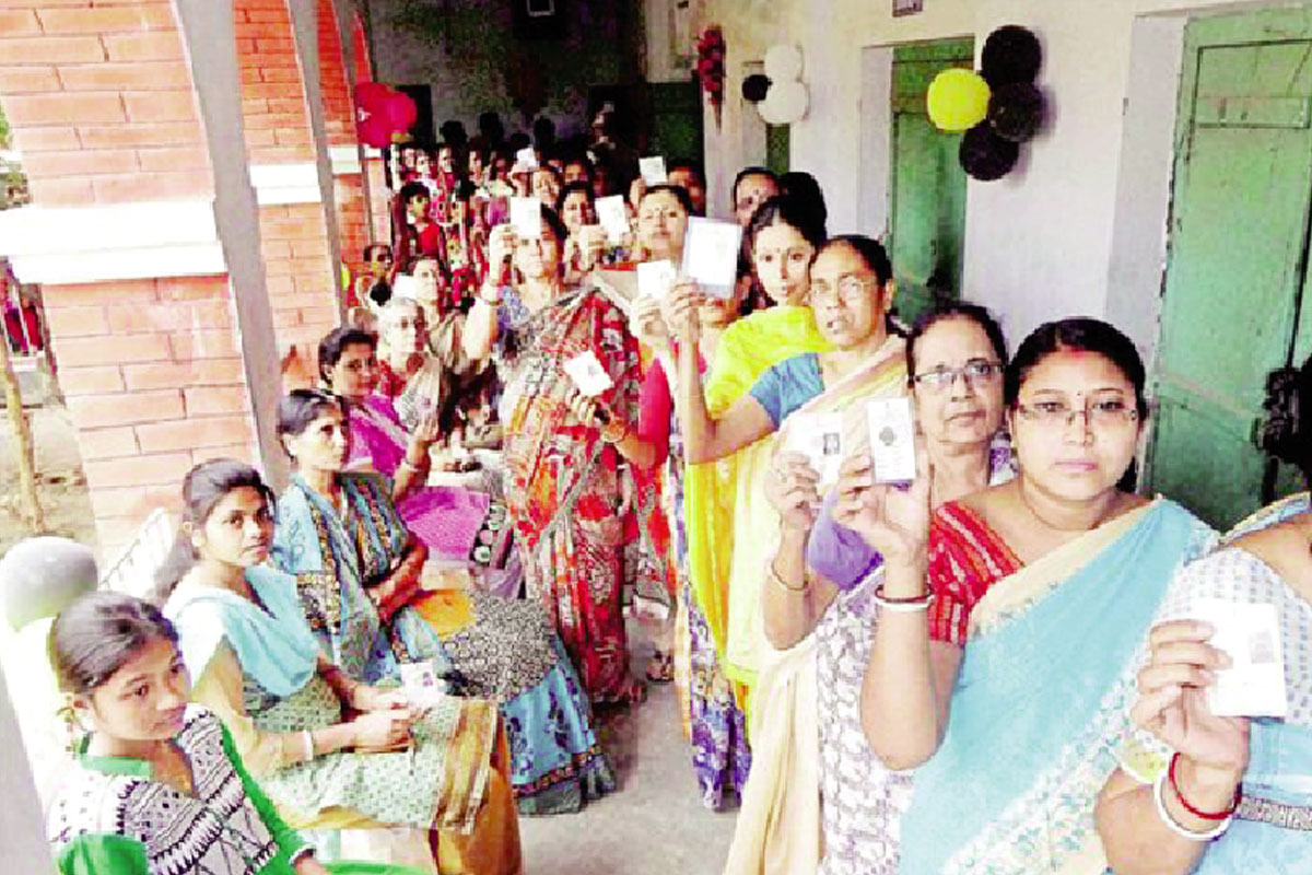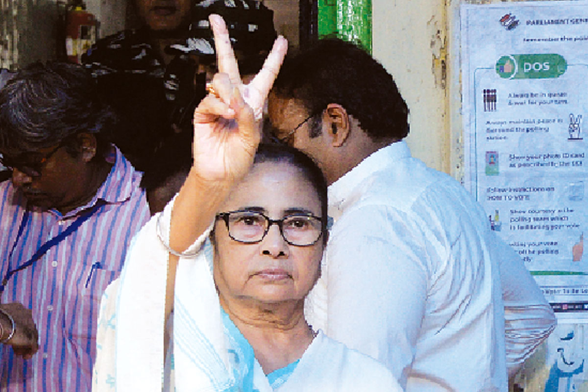 ভোট দিয়ে ভিকট্রি চিহ্ন দেখালেন মমতা