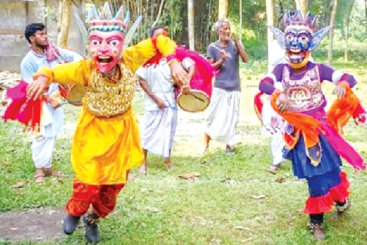 ড. ঝন্টু বড়াইক: দক্ষিণ দিনাজপুরের কুশমন্ডি ব্লকের মহিষবাথান গ্রামের প্রাচীন সংস্কৃতি গোমিরা নাচ৷ নাচ শুরু হওয়ার আগে পুরোহিত পুজো করেন এই বিশ্বাস নিয়ে যে এই নাচের দ্বারা অপদেবতারা দূর হবেন এবং প্রকৃতির আরাধনা করে যাতে ফসল ভালো হয়৷ এরপর নাচ শুরু হয় মুখোশ পরে (মুখোশগুলো প্রধানত গামার কাঠের ও আম কাঠের হয়) সঙ্গে থাকে ঢাক, ঢোল, বাঁশি, কাশি ও অন্যান্য বাদ্যযন্ত্র৷ বৈশাখ মাস থেকে শুরু হয়ে ধান রোপণের আগে পর্যন্ত বিভিন্ন দিনে বিভিন্ন জায়গায় গ্রামবাসীরা নাচের অনুষ্ঠান করে থাকে৷ এই গ্রামের বাসিন্দারা মূলত রাজবংশীয়৷ চেহারাতে পার্বত্য ছাপ আছে যেমন কিছুটা চাপা নাক, ছোট চেহারা ও ছোট ছোট চোখ৷ গ্রামের বাডি়গুলো আর পাঁচটা সাধারণ গ্রামের মতোই মাটির বাডি়৷ ছেলেরা কাঠের কাজ করে মুখোশ বানায়, রঙের কাজ মহিলারা করে থাকেন৷ প্রথমেই থাকে দুটো চরিত্র ‘বুড়ো’ আর ‘বুডি়’ এটা পরিবারে এবং সমাজে বয়স্ক মানুষদের গুরুত্ব এবং সম্মান বোঝাবার জন্য৷