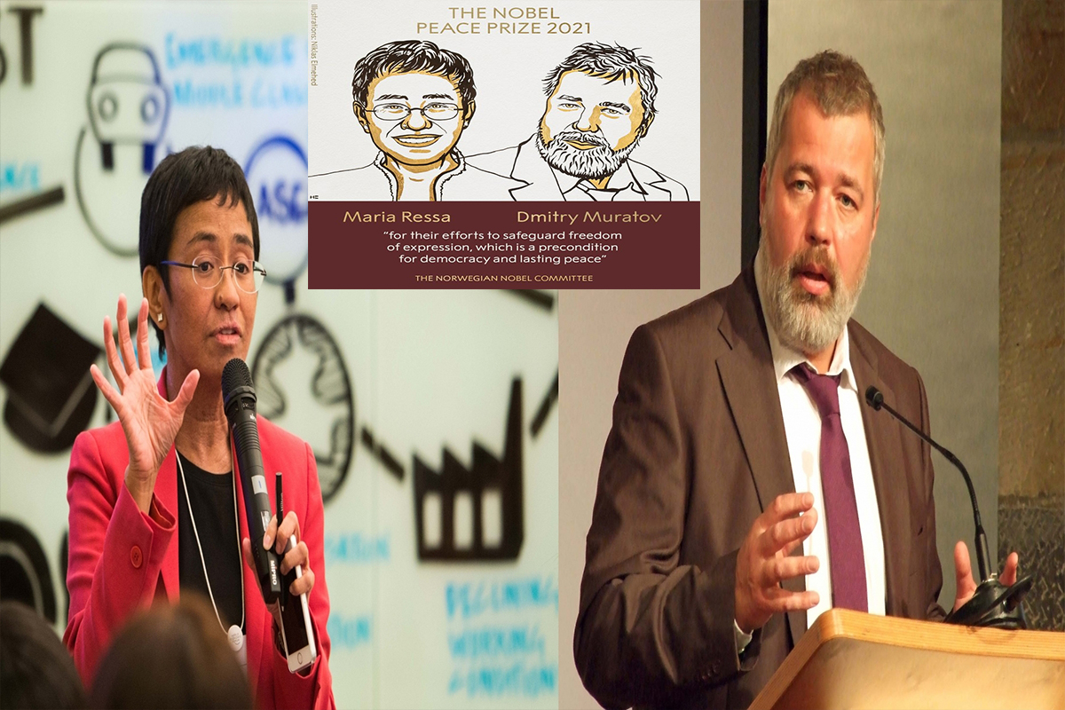 বাক স্বাধীনতা রক্ষায়-দুই সাংবাদিক পাচ্ছেন নোবেল শান্তি পুরস্কার। ফিলিপিন্সের মারিয়া রেসা এবং রাশিয়ার দিমিত্রি মুরাতভ নামে এই দুজন সাংবাদিক নোবেল শান্তি পুরস্কার পাচ্ছেন। ৩২৯ টি ব্যক্তিগত নাম এবং প্রতিষ্ঠানের নাম উঠেছিল। এদের মধ্যেই নোবেল কমিটি বেছে নিয়েছেন মারিয়া রেসা এবং দিমিত্রি মুরাতভকে।